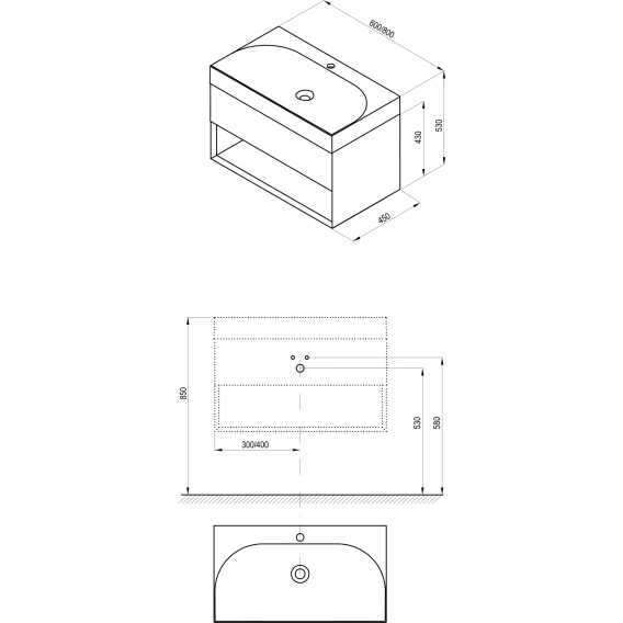 Тумба под раковину Ravak Lite X000001856 60 см, подвесная, черный матовый