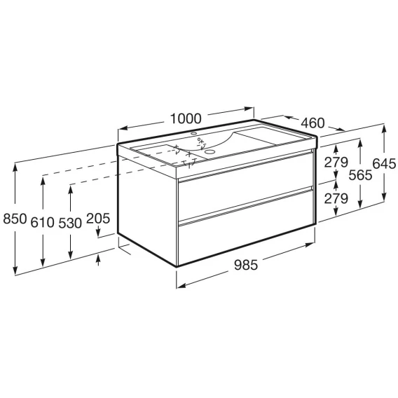 Тумба под раковину Roca Ona ZRU9308356 98,5 см, подвесная, слоновая кость матовый