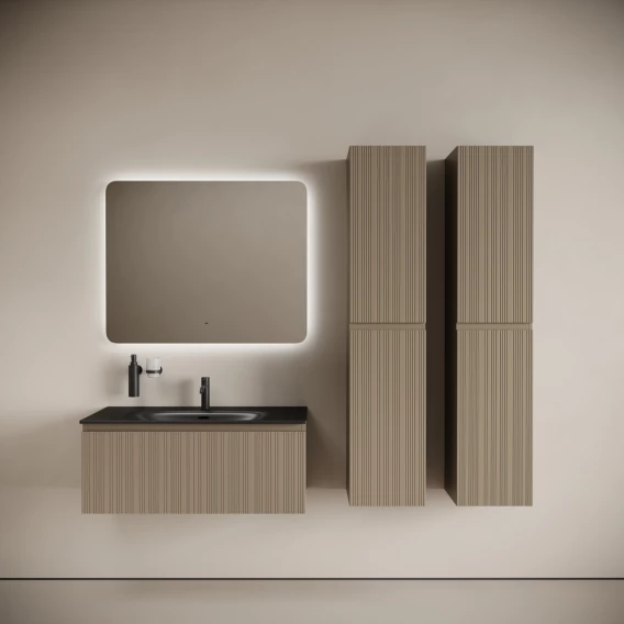 Тумба под раковину Sancos Code CD100GB 99 см, подвесная, серо-бежевый матовый