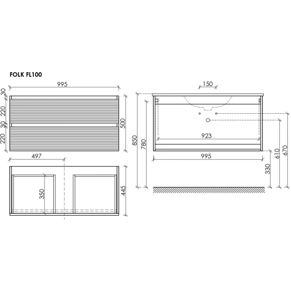 Тумба под раковину Sancos Folk FL100ES 99,5 см, подвесная, светло-серый матовый