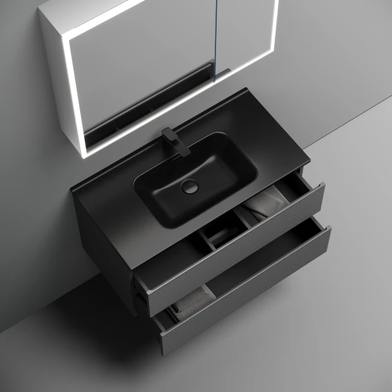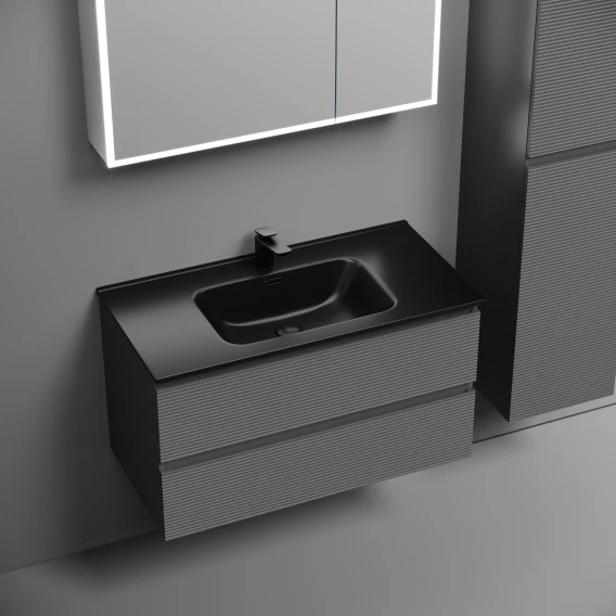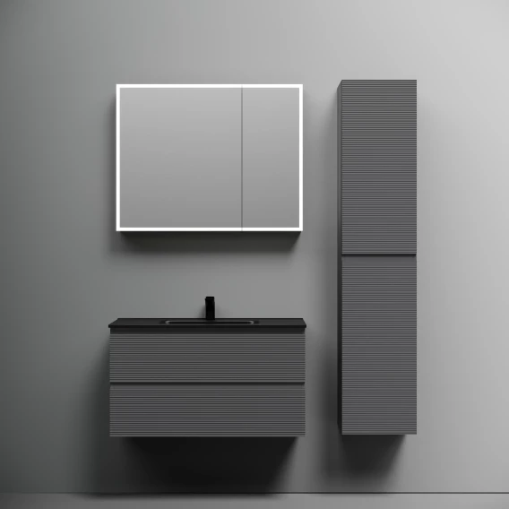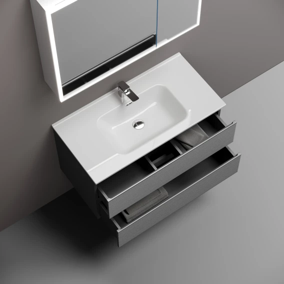 Тумба под раковину Sancos Folk FL90GS 89 см, подвесная, темно-серый матовый