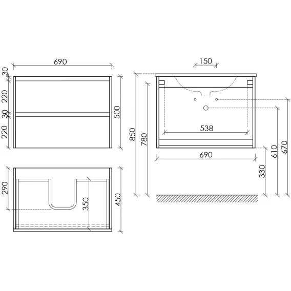 Тумба под раковину Sancos Libra LB70ECH 69 см, подвесная, дуб чарльстон