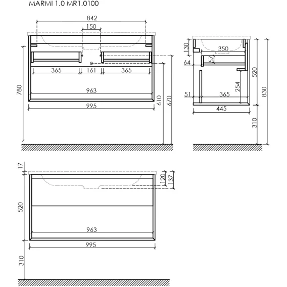Комплект мебели Sancos Marmi 1.0 MR1.0100ECH + CN7013 + MI100ECH 101 см, подвесной, дуб чарльстон