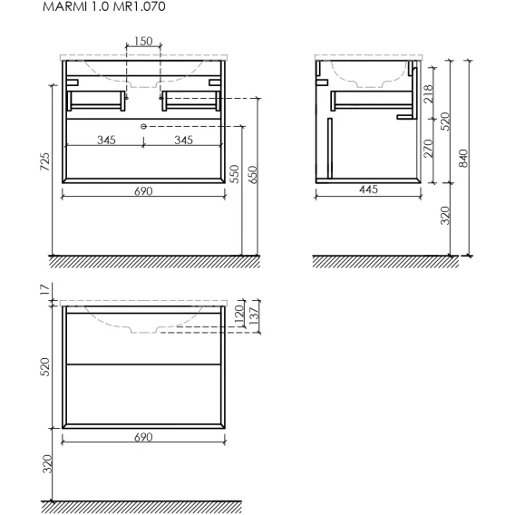 Тумба под раковину Sancos Marmi 1.0 MR1.070EG 69 см, подвесная, дуб галифакс