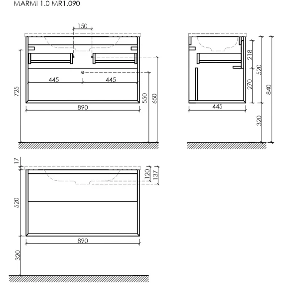 Тумба под раковину Sancos Marmi 1.0 MR1.090ECH 89 см, подвесная, дуб чарльстон