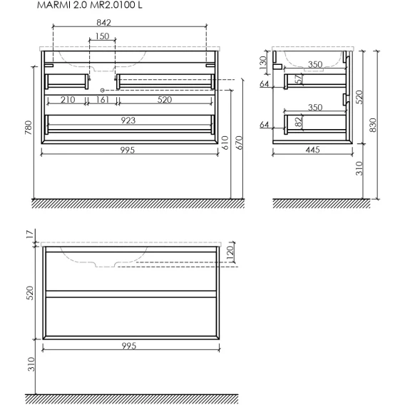 Тумба под раковину Sancos Marmi 2.0 MR2.0100LECH 99,5 см L, подвесная, дуб чарльстон