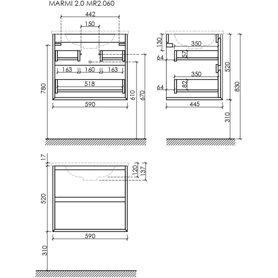 Тумба под раковину Sancos Marmi 2.0 MR2.060ECH 59 см, подвесная, дуб чарльстон