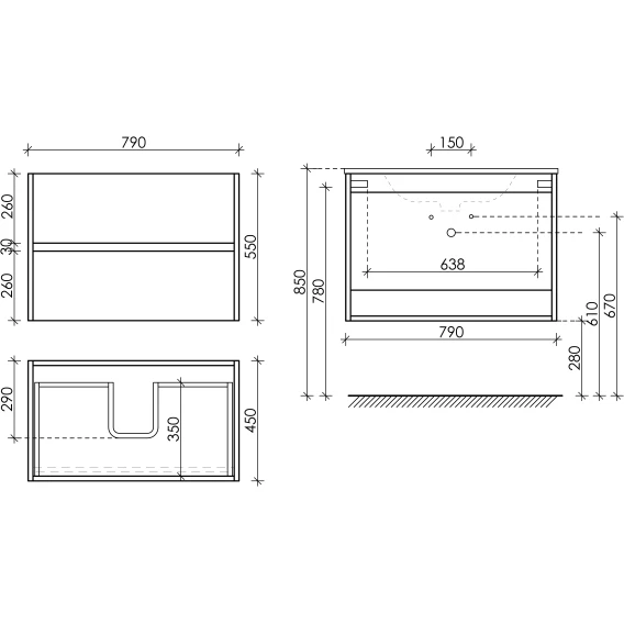 Тумба под раковину Sancos Urban UR80ECH 79 см, подвесная, дуб чарльстон
