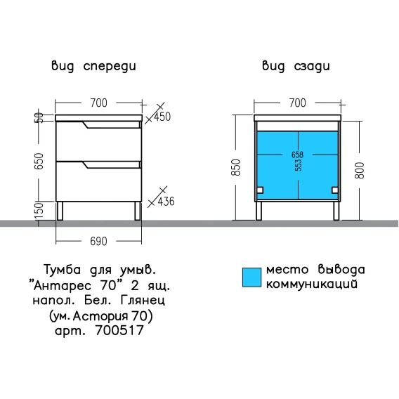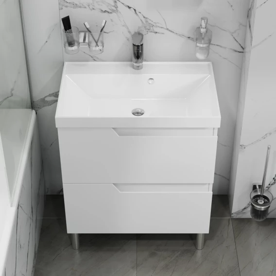 Тумба под раковину Санта Антарес 700517 69 см, напольная, белый глянец