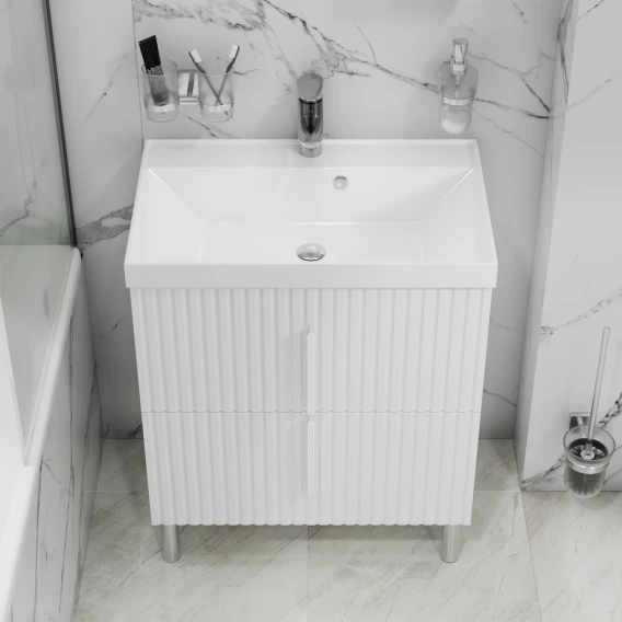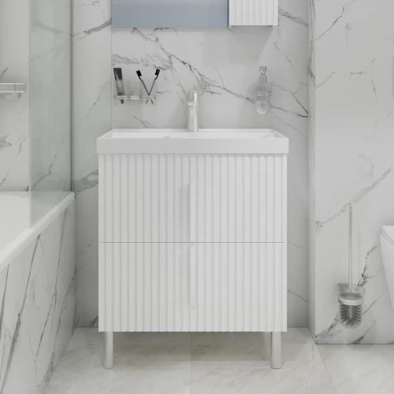 Тумба под раковину Санта Юпитер 700363 69 см, напольная, белый глянец