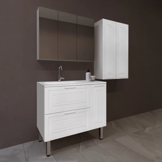Тумба с раковиной Sancos Folk FL100RW + CN7015 101 см R, подвесная, белый матовый