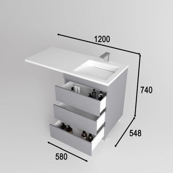 Тумба под раковину Style Line Даллас Леон СС-00002449 58 см, напольная, над стиральной машиной, светло-серый матовый