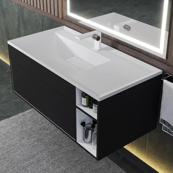 Тумба под раковину Uperwood Lotus Premium 39340205464 99,6 см, подвесная, черный матовый