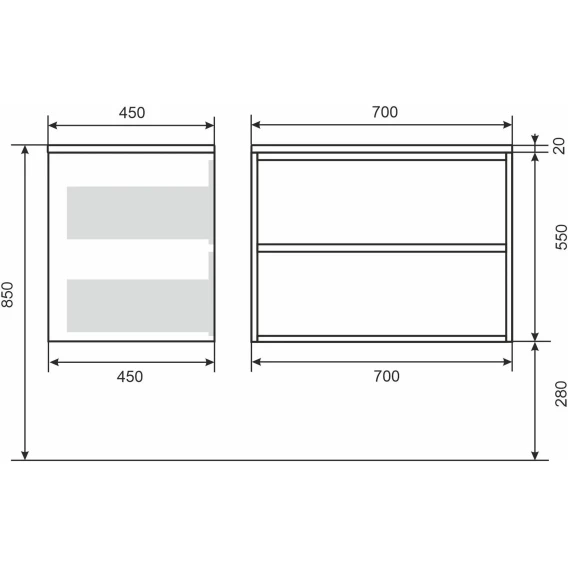 Глубина 45 см
