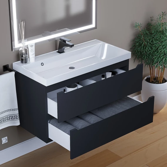 Тумба под раковину Uperwood Tanos 291020233 90 см, подвесная, черный матовый