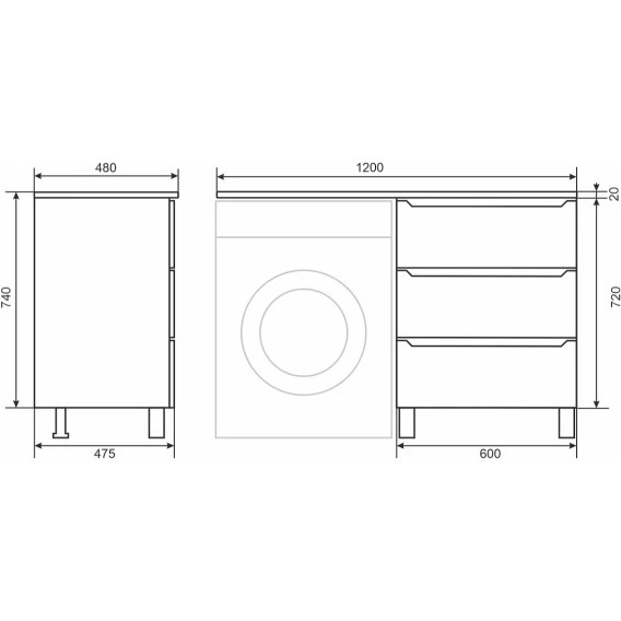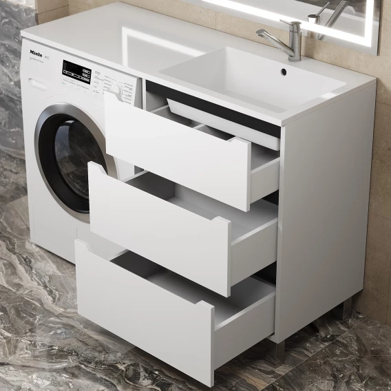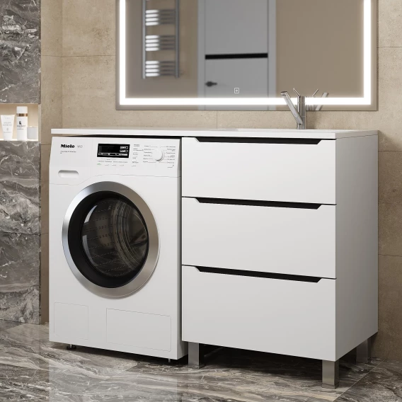 Тумба под раковину Uperwood Tanos 291020259 60 см, напольная, над стиральной машиной, белый матовый/графит матовый