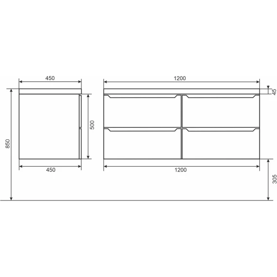 Глубина 45 см