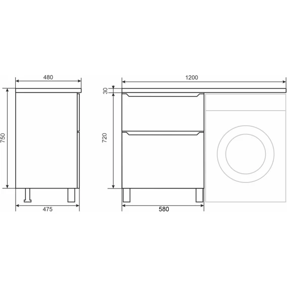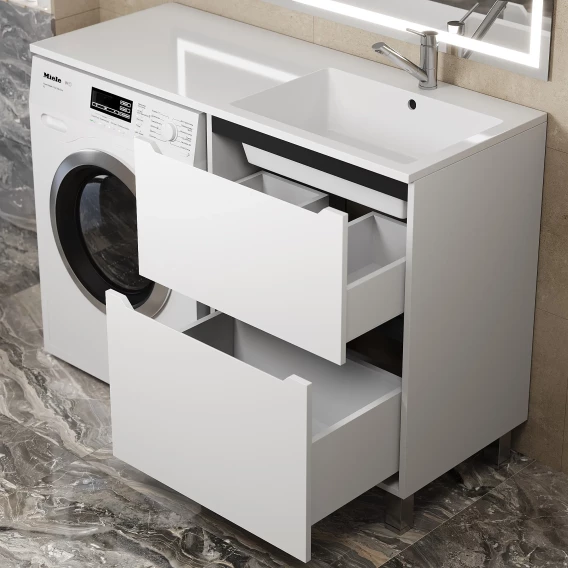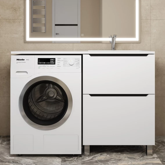 Тумба под раковину Uperwood Tanos 291120334 58 см, напольная, над стиральной машиной, белый матовый/графит матовый