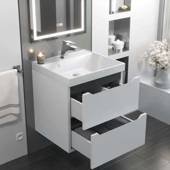 Тумба под раковину Uperwood Tanos 2930205149 50 см, подвесная, белый матовый/графит