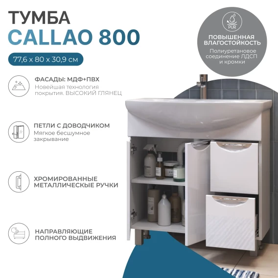 Тумба с раковиной сапфир 86 см Opadiris Валери