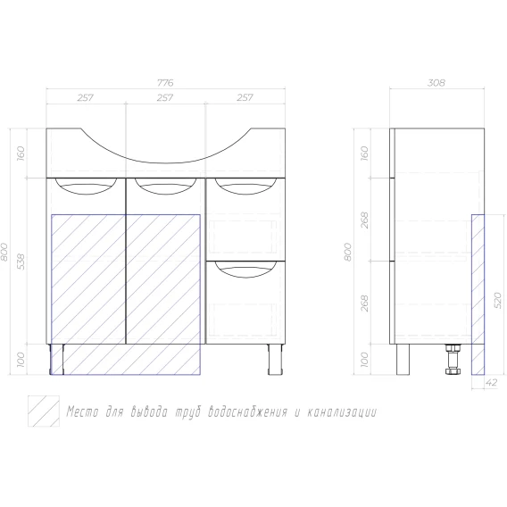 Механизм доводчика, Ящик, Полочка, Ручки, Сифон, Ножки