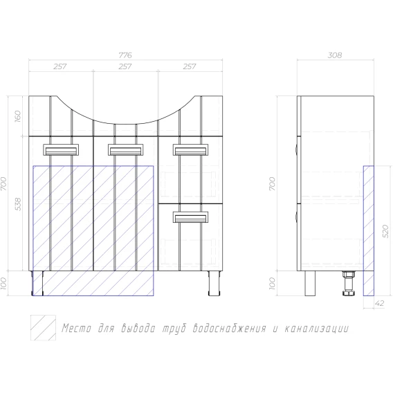 Механизм доводчика, Ящик, Полочка, Ручки, Сифон, Ножки