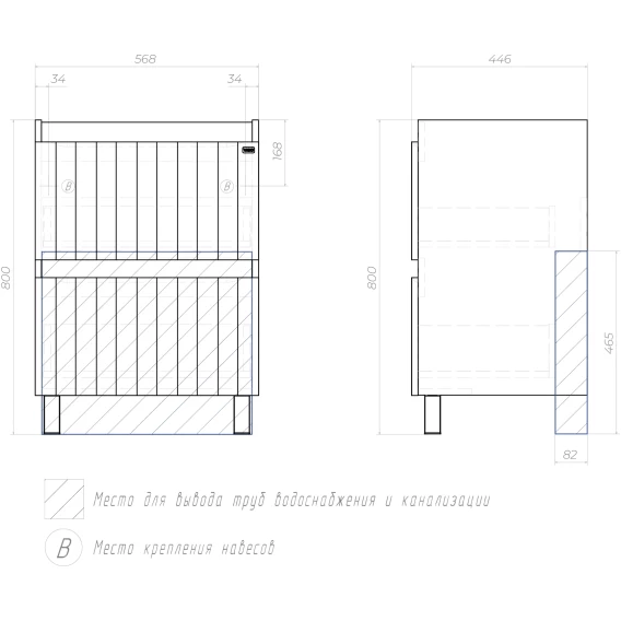Тумба железный камень/белый 60 см Runo Бари 00-00001378