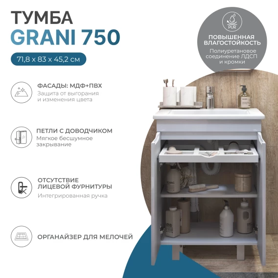 Тумба под раковину Vincea Chiara 2D VMC-2C2600NO 59,2 см, подвесная, натуральный дуб