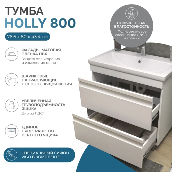 Тумба под раковину Vigo Holly 041 76,6 см, напольная, белый матовый