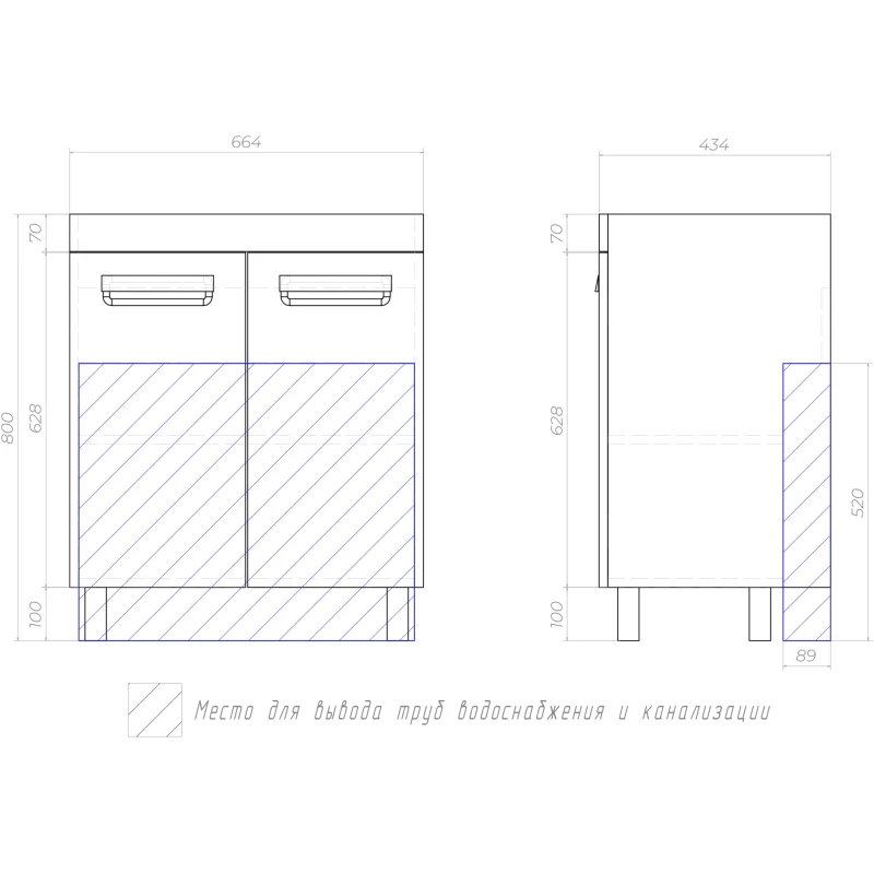Механизм доводчика, Полочка, Ручки, Сифон, Ножки