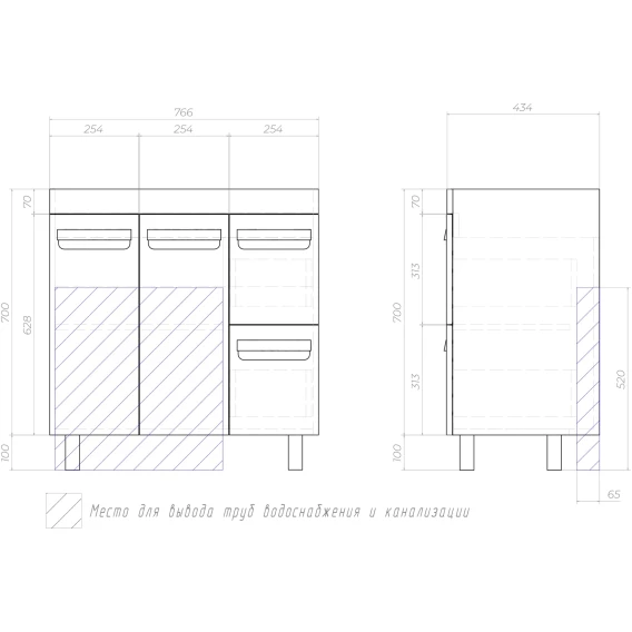 Тумба белый глянец 65 см Ravak SD 10° 650 L X000000745