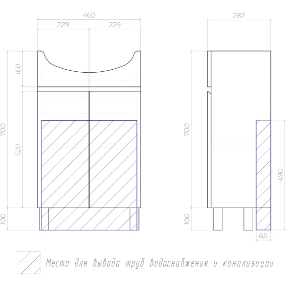 Тумба под раковину Vigo Wing tn.WIN.BAL.50.2D белый 46 см, напольная, белый