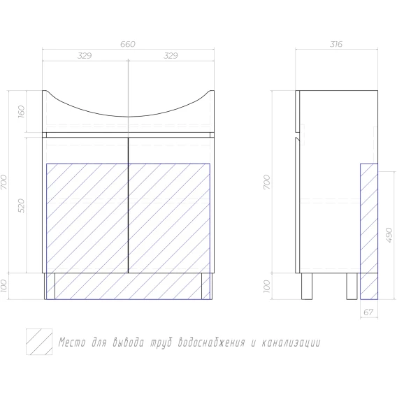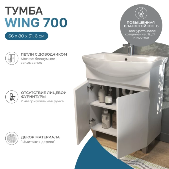 Тумба под раковину Vigo Wing tn.WIN.BAL.70.2D белый 66 см, напольная, белый