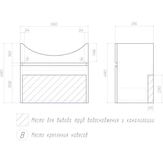 Тумба под раковину Vigo Wing tp.WIN.BAL.60.1Y белый 56 см, подвесная, белый