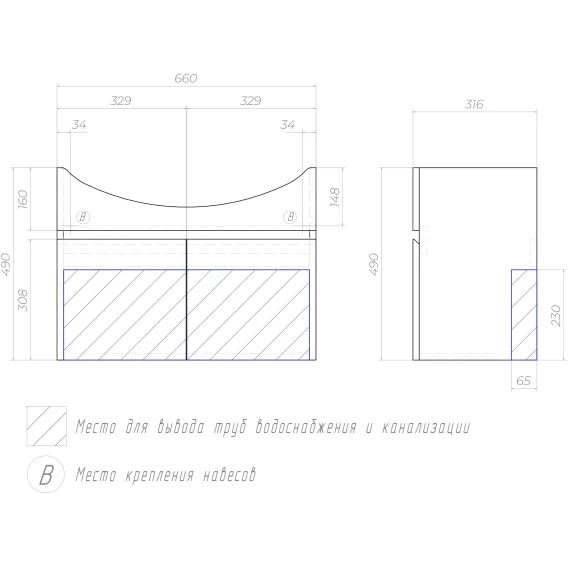 Тумба под раковину Vigo Wing tp.WIN.BAL.70.2D белый 66 см, подвесная, белый