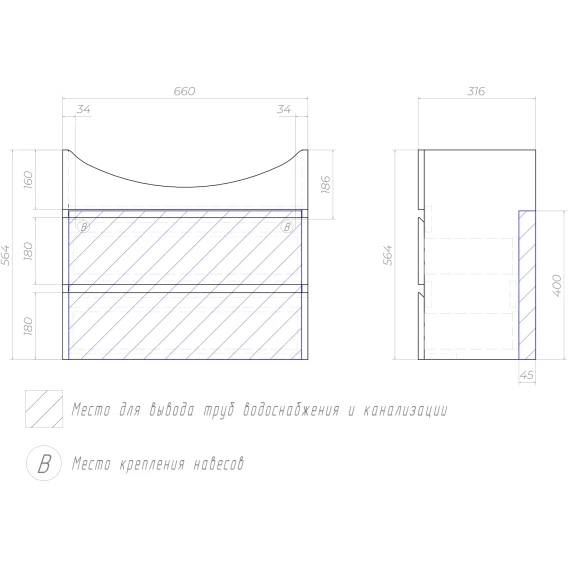 Тумба под раковину Vigo Wing tp.WIN.BAL.70.2Y белый 66 см, подвесная, белый