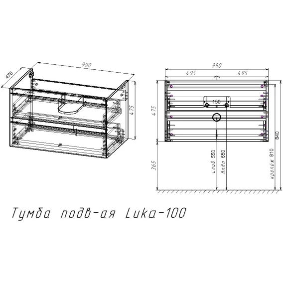 Тумба под раковину Vincea Luka VMC-2L100RO 99 см, подвесная, темный дуб