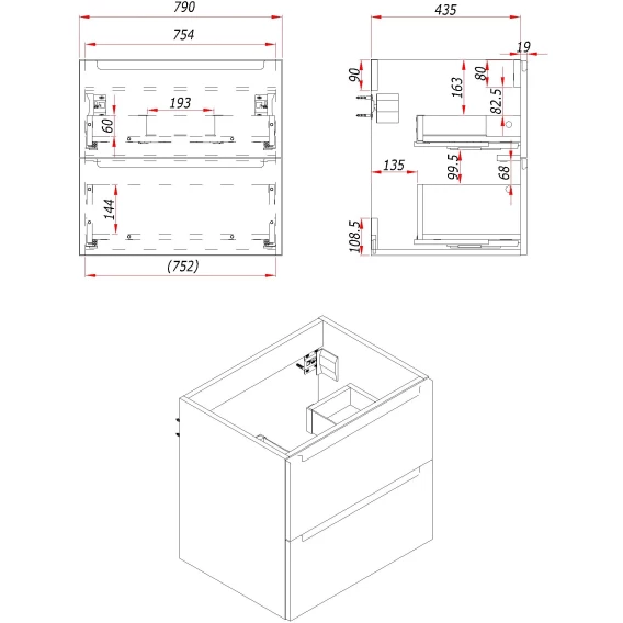 Тумба под раковину ЗОВ Дион D80BM 79 см, подвесная, белый матовый