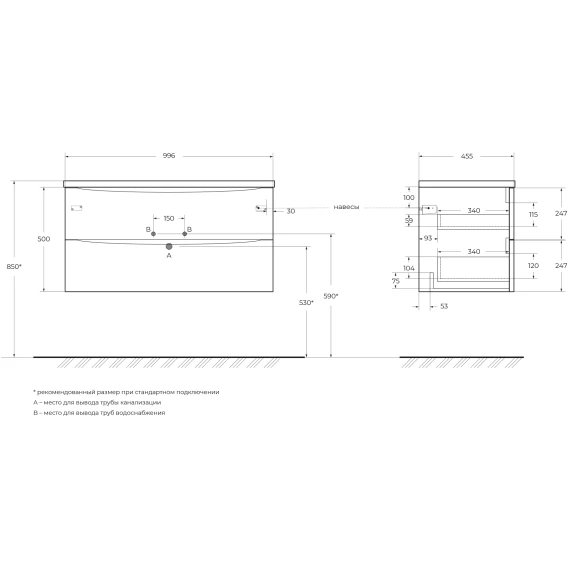 Тумба Rovere Nature Grigio 99,6 см BelBagno Acqua ACQUA-1000-2C-SO-RNG