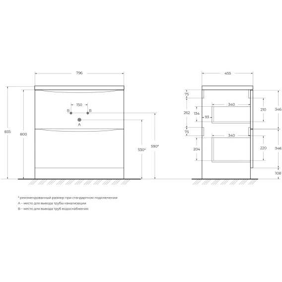 Тумба Rovere Rustico 79,6 см BelBagno Acqua ACQUA-800-2C-PIA-RR