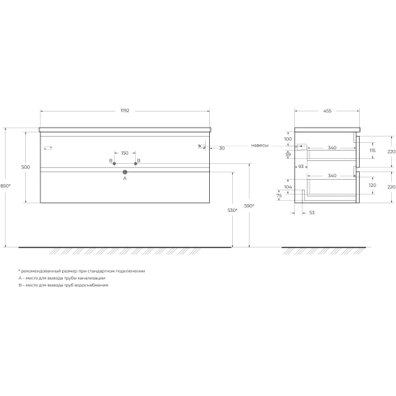 Тумба Rovere Nature Grigio 59,6 см BelBagno Albano ALBANO-600-2C-SO-RNG