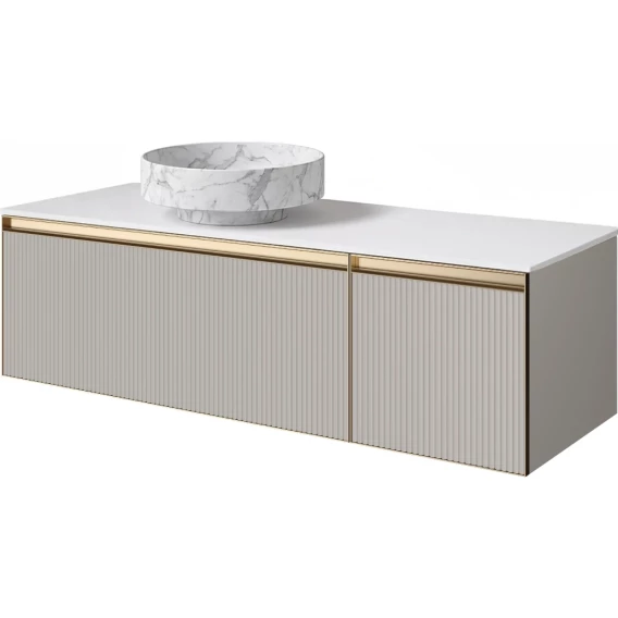 Тумба с раковиной Armadi Art Quatro Cashmere 790-M2-140-CM-RIB-MG + 792-140-W + 801-CLCT 141 см L, подвесная, со столешницей, кашемир матовый