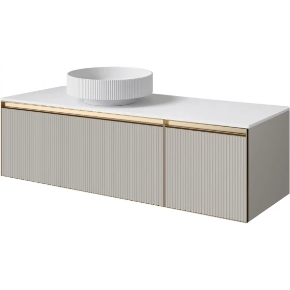 Тумба с раковиной Armadi Art Quatro Cashmere 790-M2-140-CM-RIB-MG + 792-140-W + 801-R-MW 141 см L, подвесная, со столешницей, кашемир матовый