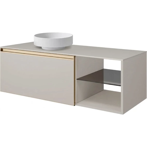 Тумба с раковиной Armadi Art Quatro Cashmere 790-M6-120-CM-MG + 792-120-C + 801-R-MW 121 см L, подвесная, со столешницей, кашемир матовый
