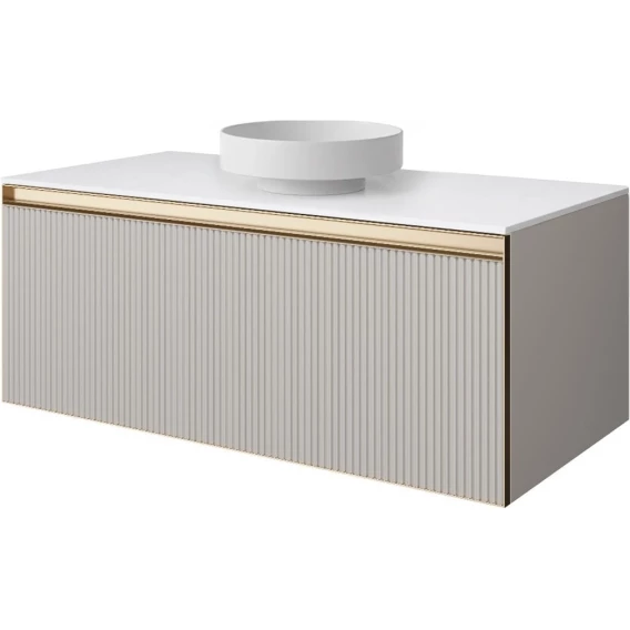 Тумба с раковиной Armadi Art Quatro Cashmere Fuga 790-M1-100-CM-RIB-MG + 792-100-W + 801-R-MW 101 см , подвесная, со столешницей, кашемир матовый