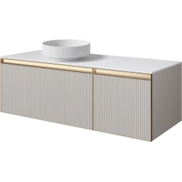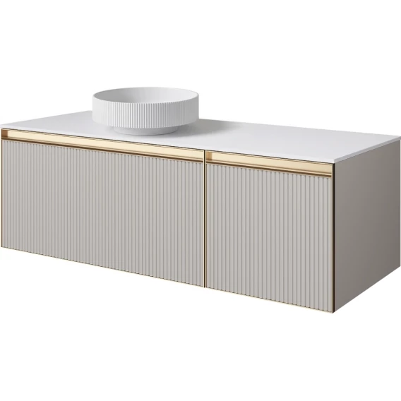 Тумба с раковиной Armadi Art Quatro Cashmere Fuga 790-M2-120-CM-RIB-MG + 792-120-W + 801-R-MW 121 см L , подвесная, со столешницей, кашемир матовый