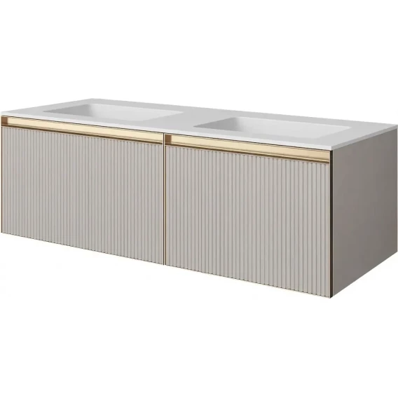 Тумба под раковину Armadi Art Quatro Cashmere Fuga 790-M2-140(70+70)-R-C-M+L 140 см, подвесная, с подсветкой, кашемир матовый
