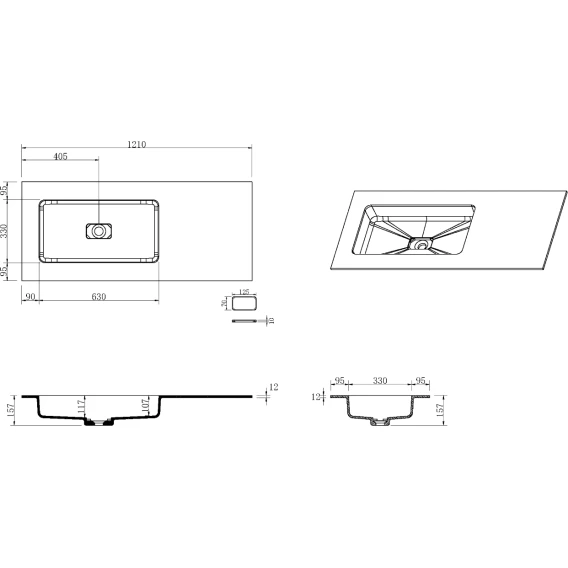 Раковина Armadi Art Quatro Matt White 793-120-W-A 121x52 см L/R, накладная, белый матовый