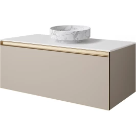Тумба с раковиной Armadi Art Quatro Daphne 790-M1-120-D-MG-LED + 792-120-W + 801-CLCT 121 см , подвесная, со столешницей, с подсветкой, бежевый матовый