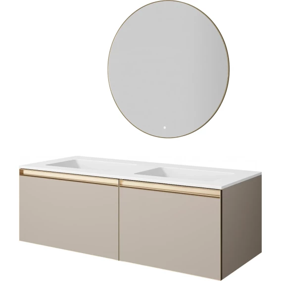 Тумба с раковиной Armadi Art Quatro Daphne 790-M2-140(70+70)-D-MG+LD + 793-140-2-W 141 см, подвесная, с подсветкой, бежевый матовый